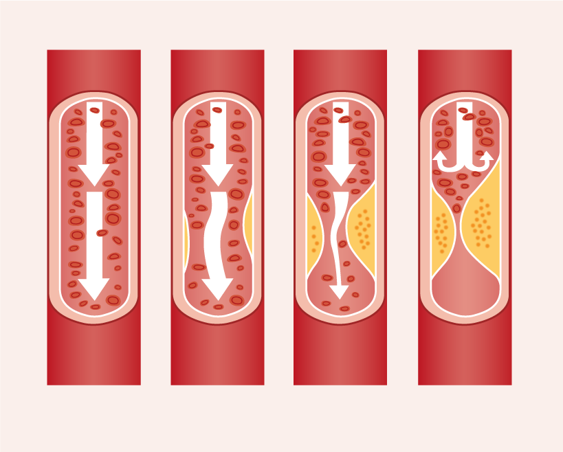 Arterioesclerosis. Enfermedad en la cual la placa se deposita a lo largo de las paredes de las arterias. Los alimentos compuestos de grasa, colesterol, calcio y otras sustancias que a través de transformaciones orgánicas se encuentran en la sangre, se adhieren a las paredes de las arterias formando la placa, que con el tiempo, se endurece y angosta las arterias. Si el corazón se expone a un sobreesfuerzo, pueden aparecer trastornos y formarse algún coágulo que a su vez puede taponar una arteria semiobstruida, pero cuando se obstruye completamente una arteria coronaria, se interrumpe el suministro de sangre a las fibras del músculo cardiaco, dando origen al infarto de miocardio.
