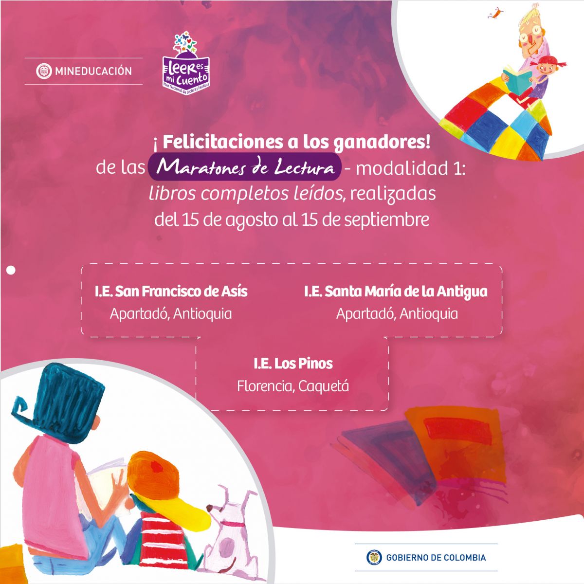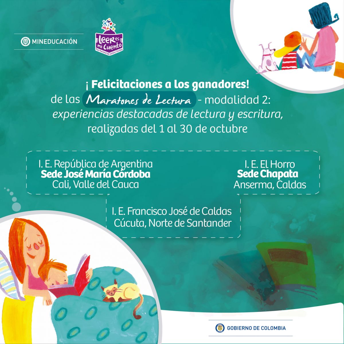"Maratones de lectura" Es una estrategia pedagógica, enmarcada en los proyectos del Plan Nacional de Lectura y Escritura, diseñada para movilizar acciones y reflexiones en torno a la importancia de la lectura y la escritura en la biblioteca y entorno escolar, como escenarios de potenciación del aprendizaje y de la inmersión en el inagotable mundo de la cultura y el conocimiento.