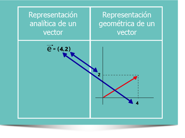 En el caso de la representación geométrica de un vector y la representación analítica, tenemos una relación biunívoca.