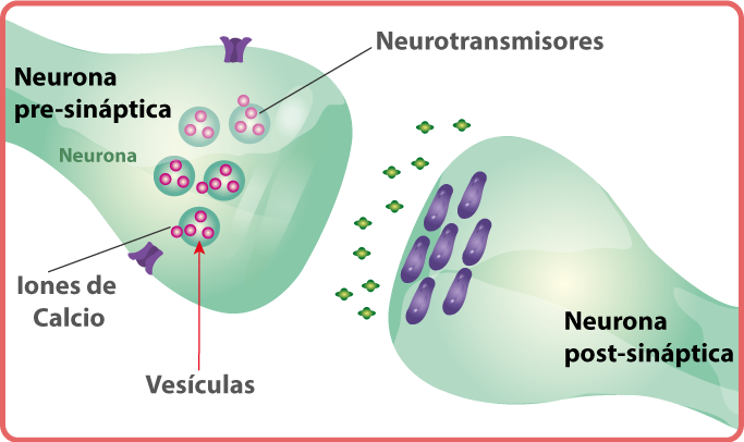 neurotransmisores de su interior hacia el espacio sináptico en donde se