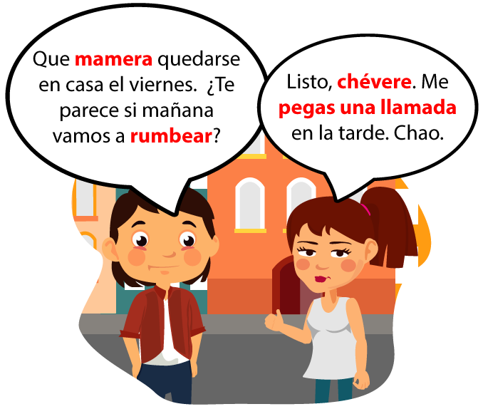 Dos amigos conversan usando palabras propias de su contexto social. En este caso, el contexto es el de las personas jóvenes.