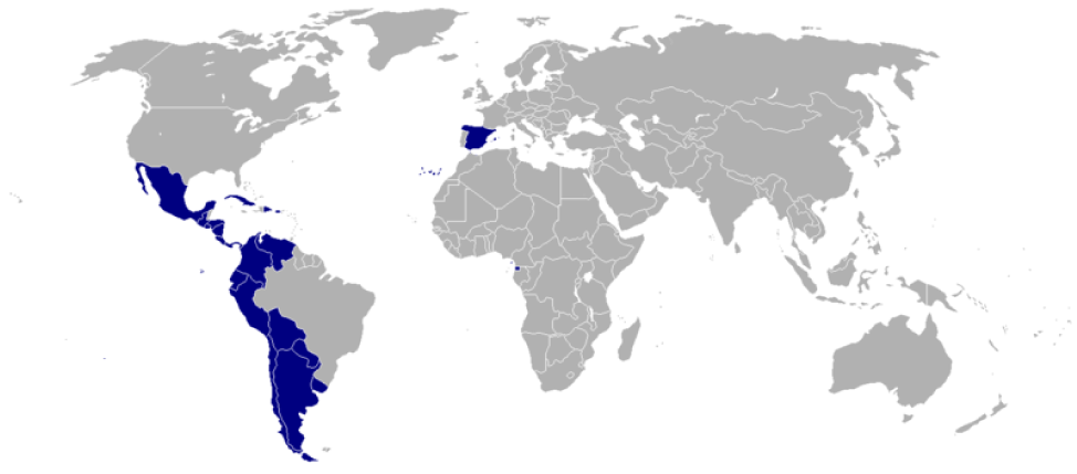 Países en el mundo en los que se habla el idioma español.Cada uno de ellos representa un dialecto diferente.
